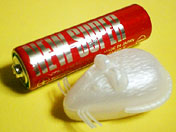 このネズミのケースを開けると(電池は大きさ比較のため)親不知が入っています。